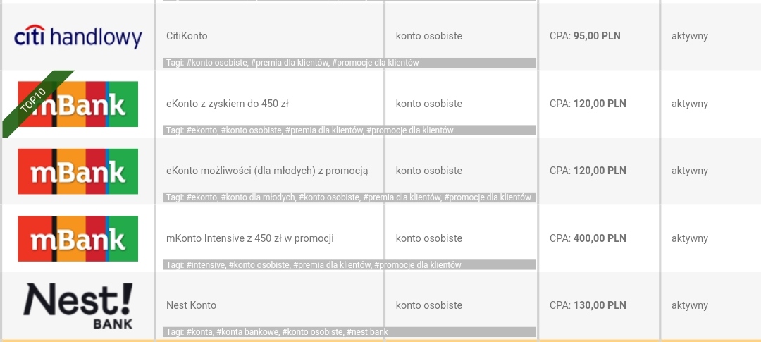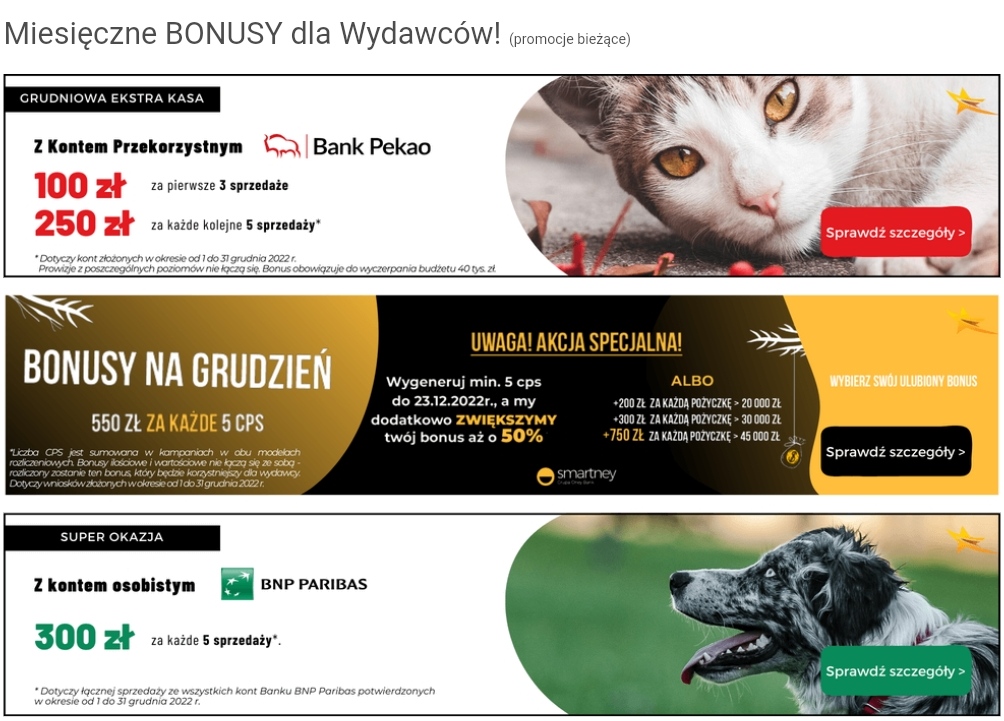 Stawki za produkty, które reklamujemy są mocno konkurencyjne i atrakcyjne, a oscylują w granicach od 100 do 160 złotych od jednego polecenia produktu.